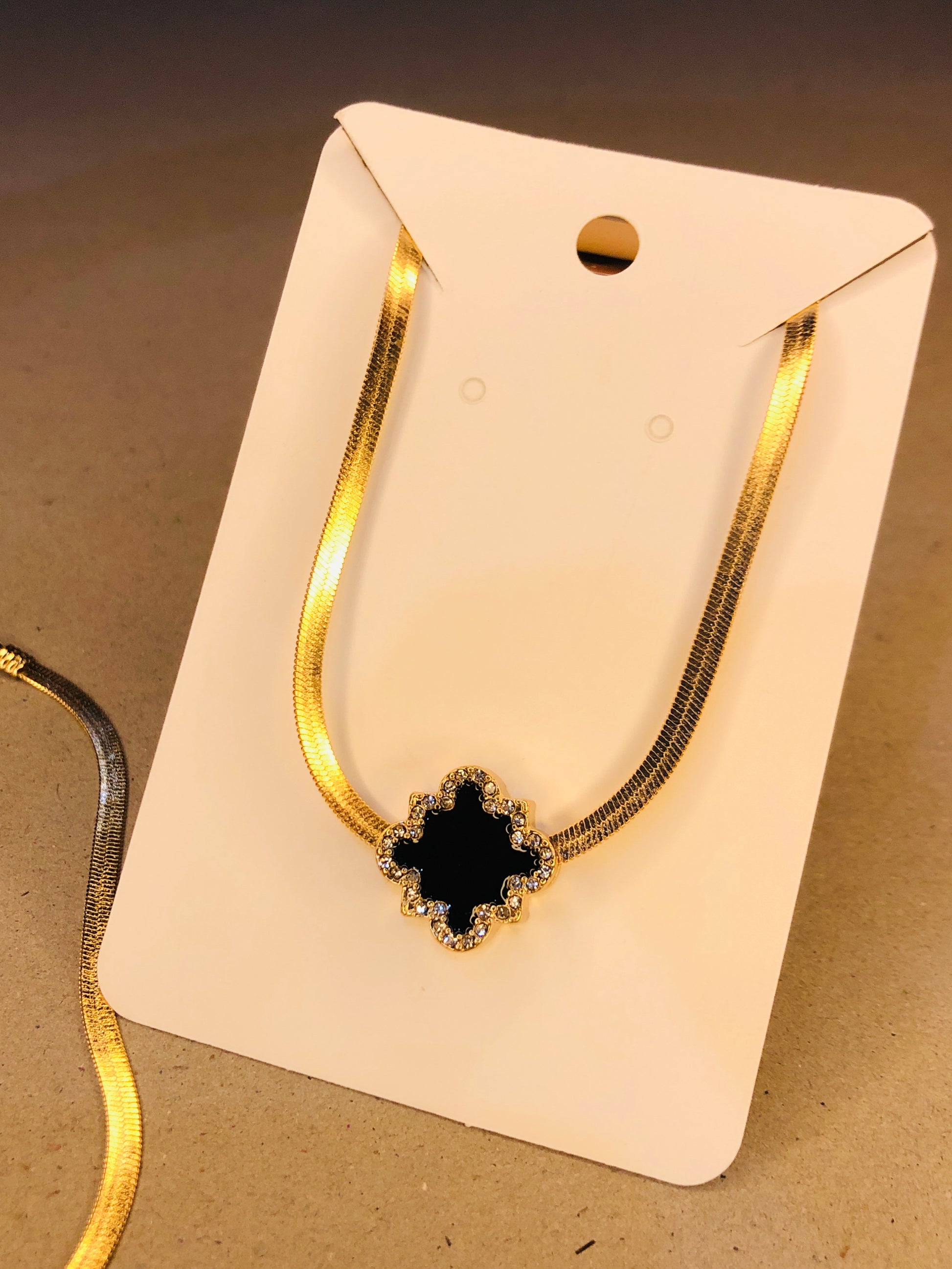 • Pendant Design: Black clover charm surrounded by rhinestones
