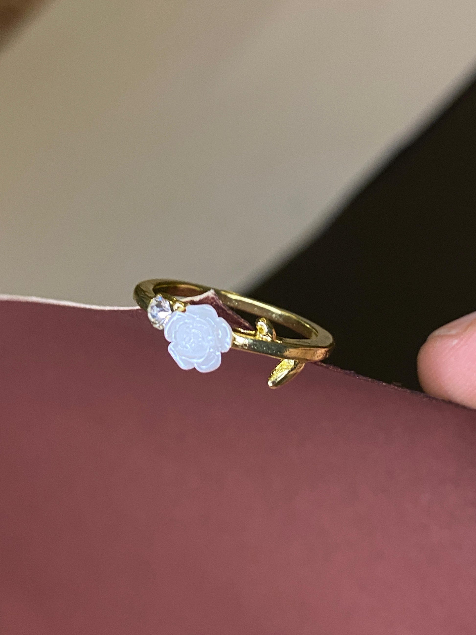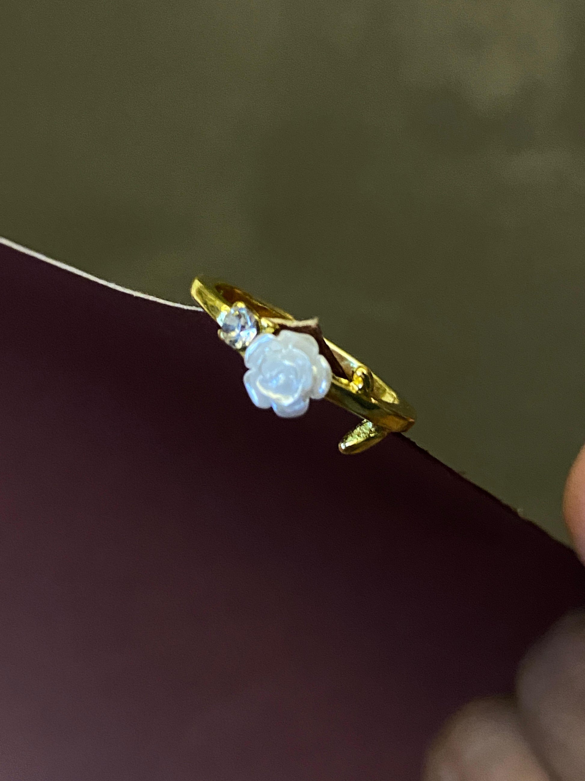 Add a subtle touch of elegance with this Gold Rose Adjustable Ring, a perfect blend of simplicity and charm. Featuring a beautifully detailed white rose on a sleek gold open band, this minimal floral ring is designed for everyday wear and effortless styling. The adjustable fit makes it suitable for all finger sizes, offering both comfort and versatility.
